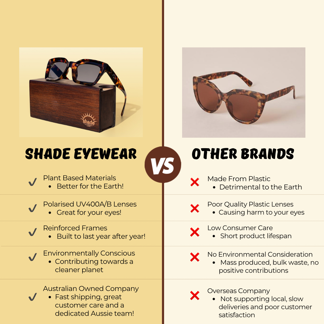 As soon as you hold a pair of Shade sunnies in your hand, you will notice the insane amount of quality we have packed into our sustainable eyewear, and you will never look back.
